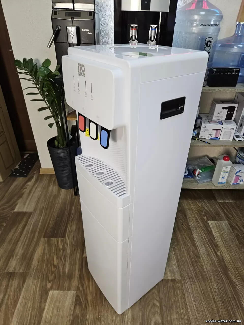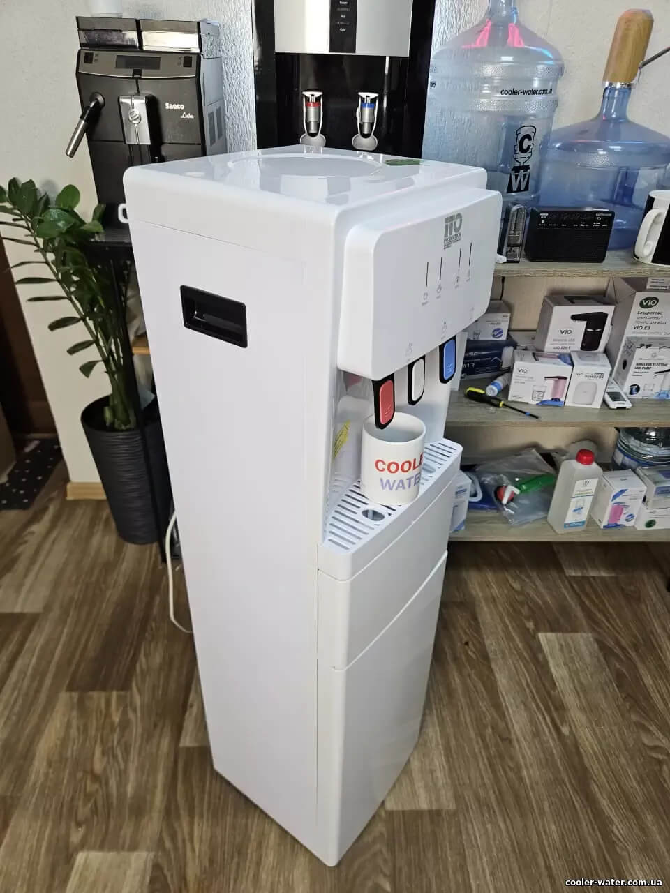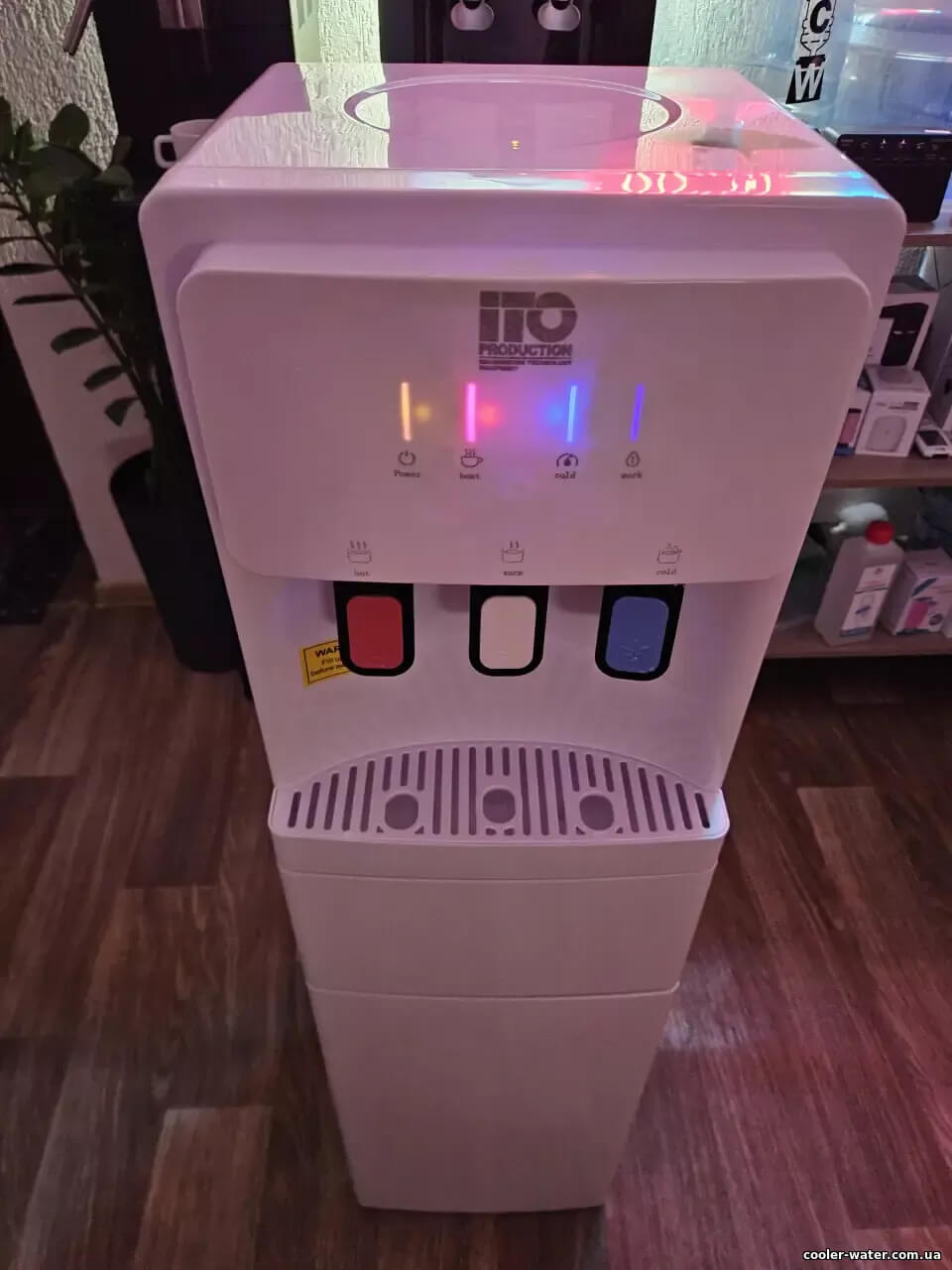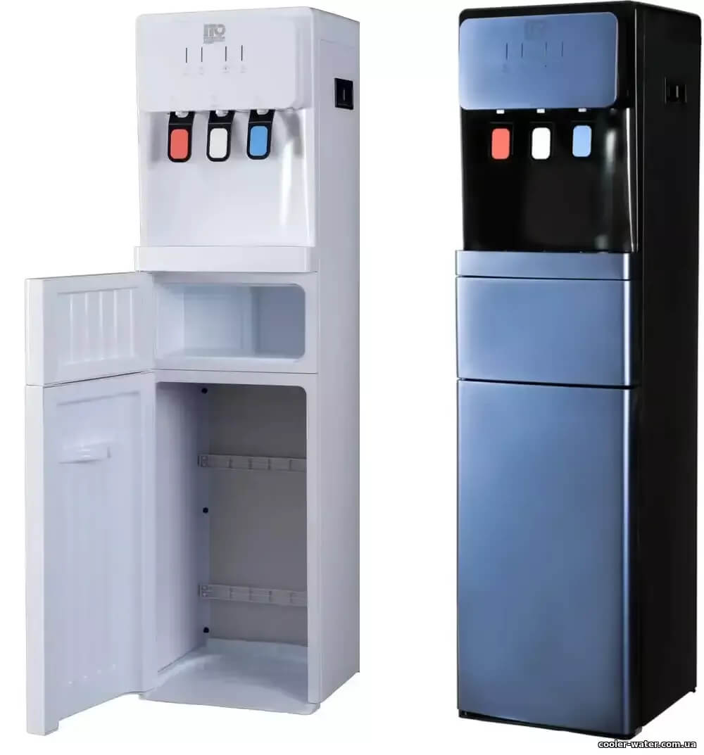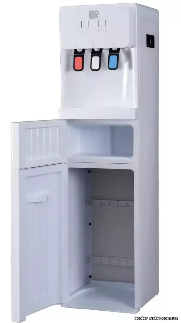 Кулер для воды ITO ВН-93 White — нагрев, охлаждение, электронный, нижняя загрузка, мини шкафчик, очень высокий — 115см, три крана подачи воды, быстро греет и хорошо охлаждает воду.