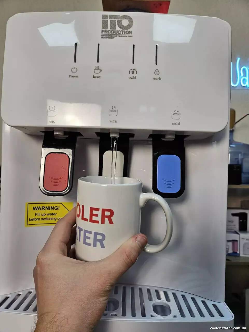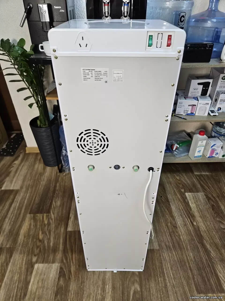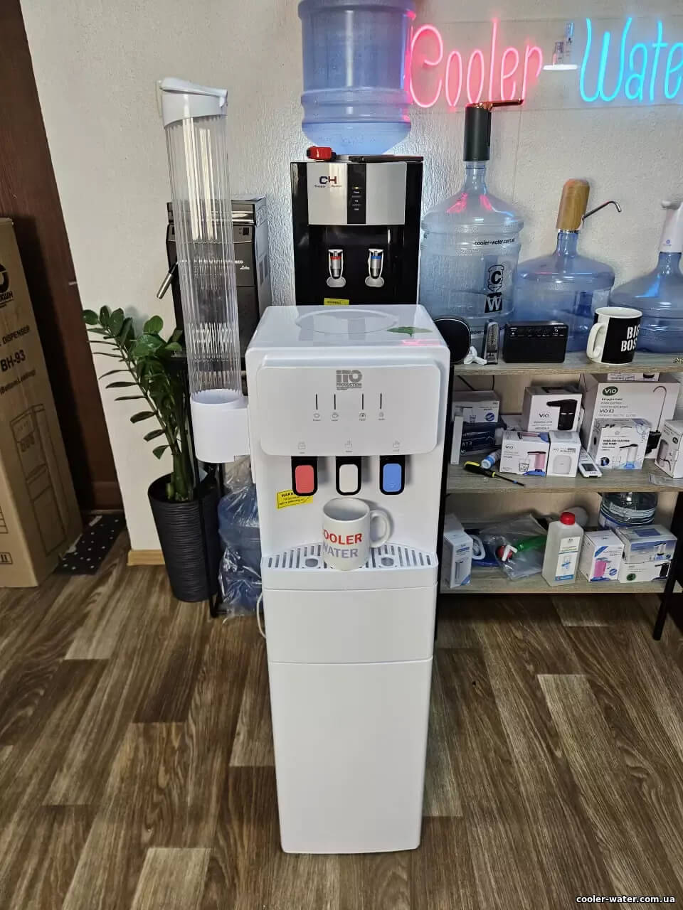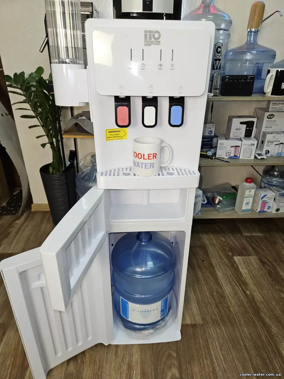 Кулер для воды ITO ВН-93 White — нагрев, охлаждение, электронный, нижняя загрузка, мини шкафчик, очень высокий — 115см, три крана подачи воды, быстро греет и хорошо охлаждает воду.